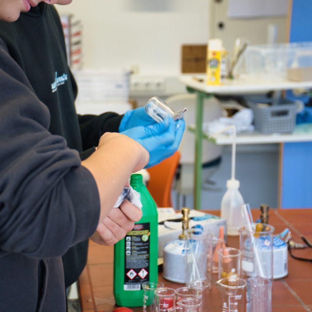Aber auch die anderen Workshops begeisterten die Schülerinnen und Schüler von Klasse 5 bis 12: Sie konnten Stoffe färben, das Galileo-Teleskop bauen, Insekten erforschen, Flaschenzüge bauen, programmieren sowie Klimaexperimente durchführen und dort wissenschaftlich beweisen, dass CO² zum Treibhauseffekt und der Erderwärmung beiträgt.